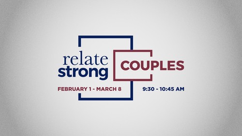 Our stories shape how we relate. RelateStrong offers biblical insight and practical tools to help you respond with clarity, health, and connection—even in conflict. Meets in Connection Center. Registration closes Feb 1. Open to individuals or couples—no cost to register. A $12 digital Participant Guide is required.