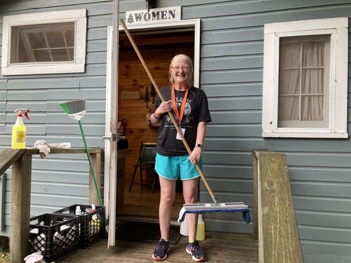 After a lunch of pizza and wings all the guys went to, you guessed it, chop more wood, while all of the ladies worked with a cleaning crew to clean multiple bathrooms and meeting room around the property. We had a blast laughing and joking as we scrubbed toilets. One young man who works here for the summer was very clear in his instructions on specifically how I was to mop the bathroom floors. I chuckled at his serious and through instruction, but also saw how amazing it was that this college guy wanted to make sure the job was done well every time. This work crew does this three times a day! Finding joy in the mundane was a talent I saw shine in all of us as we cleaned. Time flew by and we were finished early. Us ladies went to go see what all of this wood chopping the guys were doing was about.