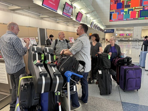 Our team arrived early at DFW for our flight to Dubai. We all got our bags checked in, said our goodbyes and then headed off to security. Dave Byrd prayed for our team. Little did we know at the time but a sweet lady was watching us pray and as we finished going through security she mentioned that she watched us pray and was wondering where we were going and doing. We shared with her our team journey and then she asked if we could pray for her home country Ethiopia. We joyfully prayed her pray request and then we headed to our gate for our flight. It's a long fifteen hour flight. but we praise God for a smooth, on time flight.