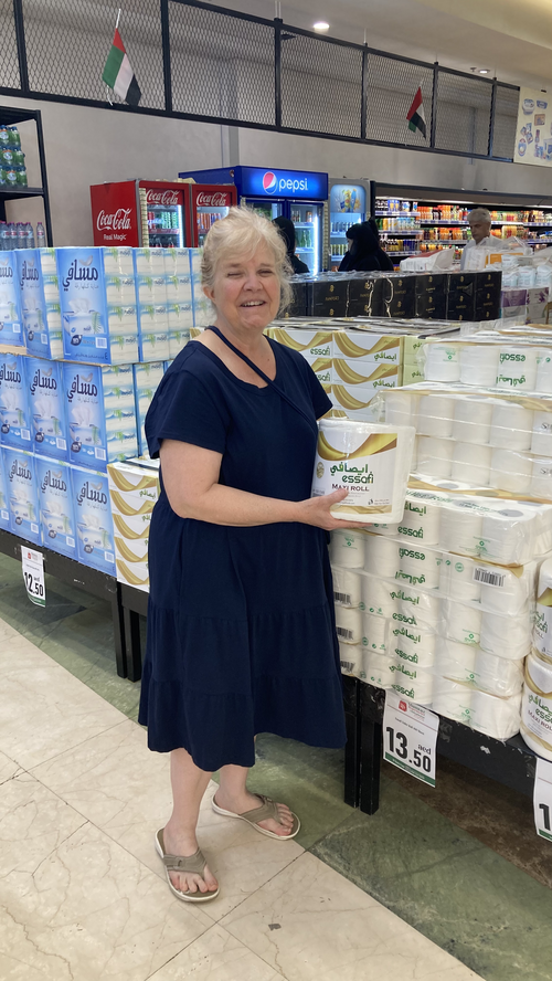 Found true Mega Toilet Paper at the Hypermarket - it's really different in Dubai! We also found cold Coca-Cola! It's always really fun to experience stores in different countries.