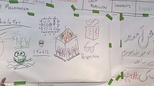 After Martin's lesson, AJ taught his lesson on the Eternal State. This includes the descriptions of the New Heaven and New Earth, the New Jerusalem and Eternal Life. Little did our FB team and leaders know that AJ has a hidden talent in his "Bob Ross" pictures! As we read AJ drew the descriptions written in the Book of Revelation Chapter 21. We were reminded that Scripture seems to indicate that when believers die, they go to heaven to be with Jesus. Heaven is described as place of worship where angels and believers alike will witness God at work and sing thunderous praises to Him for everything that He is doing. There will be believers from every age, all anticipating the final restoration of all things. On that day, God will destroy the old heaven and the old earth.