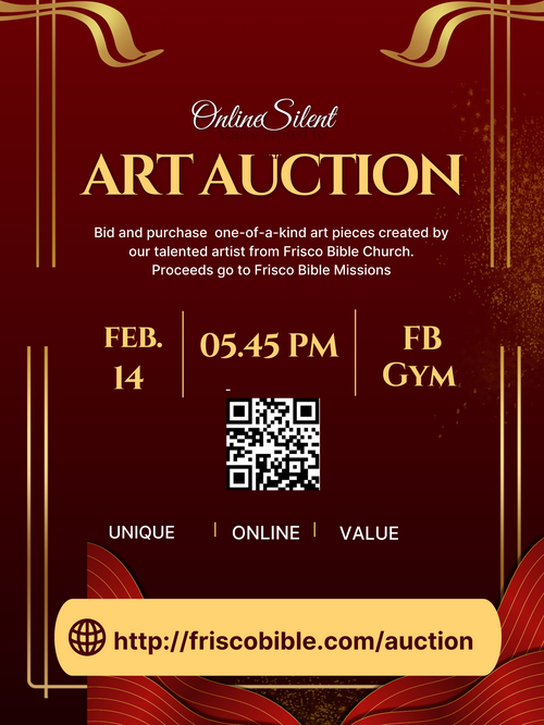 Be part of the excitement through our inaugural Online Mission Silent Art Auction, featuring unique, original artwork from our very own Frisco Bible Church Artist.