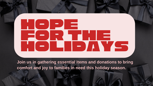 Our Hope for the Holidays fundraiser is an opportunity to provide comfort and joy to these families in need. Through your generosity, we’re gathering essential items and donations to help create a sense of warmth and hope this holiday season. Let’s put faith into action and show God’s love to those who need it most.